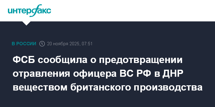ФСБ сообщила о предотвращении отравления офицера ВС РФ в ДНР веществом британского производства