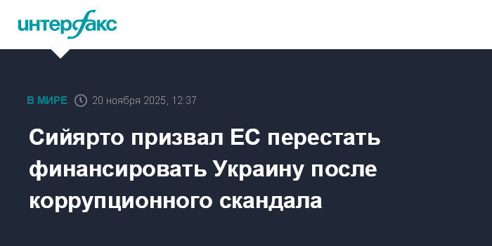 Москва. 20 ноября. INTERFAX.RU - Министр иностранных дел Венгрии Петер Сийярто заявил журналистам в Брюсселе перед встречей глав МИД стран Евросоюза, что ЕС должен прекратить выделять деньги украинскому правительству после появления сообщений о коррупции в нем. Об этом сообщают западные СМИ.