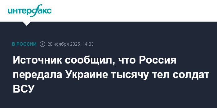 Источник сообщил, что Россия передала Украине тысячу тел солдат ВСУ