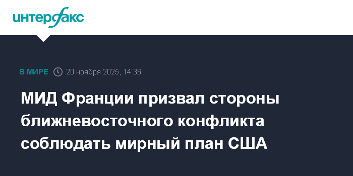 МИД Франции призвал стороны ближневосточного конфликта соблюдать мирный план США