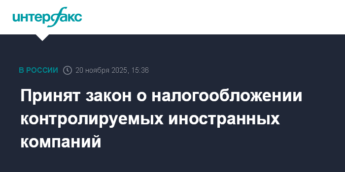 Москва. 20 ноября. INTERFAX.RU - Госдума приняла в третьем чтении закон, который устанавливает дополнительное условие для освобождения от российского налогообложения прибыли контролируемых иностранных компаний (КИК), принадлежащих российским бенефициарам. Обязательным требованием станет регистрация компании в юрисдикции, где ставка налога на прибыль выше 15%.