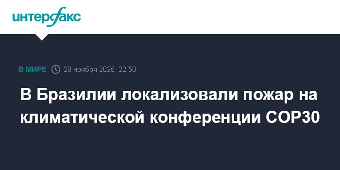 Москва. 20 ноября. INTERFAX.RU - Пожарные локализовали возгорание, произошедшее на месте проведения климатической конференции COP30 в бразильском городе Белен, сообщает в четверг агентство ЭФЭ.