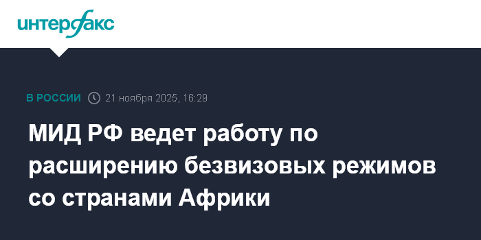 МИД РФ ведет работу по расширению безвизовых режимов со странами Африки