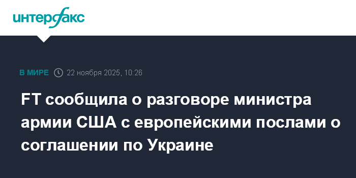 FT сообщила о разговоре министра армии США с европейскими послами о соглашении по Украине
