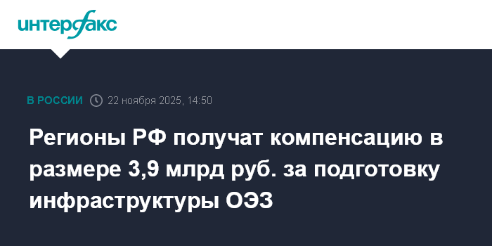 Регионы РФ получат компенсацию в размере 3,9 млрд руб. за подготовку инфраструктуры ОЭЗ