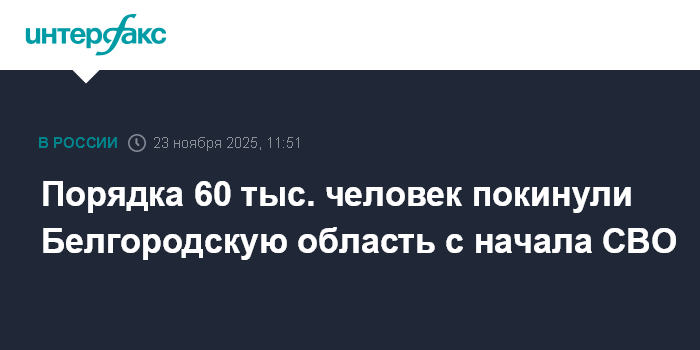 Порядка 60 тыс. человек покинули Белгородскую область с начала СВО