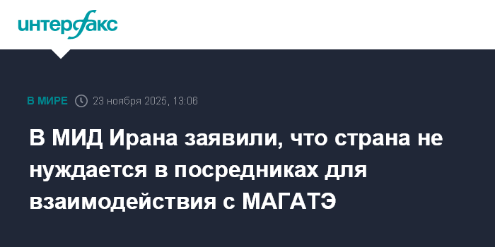 В МИД Ирана заявили, что страна не нуждается в посредниках для взаимодействия с МАГАТЭ