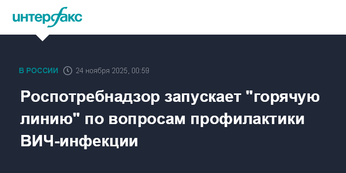Москва. 24 ноября. INTERFAX.RU - Роспотребнадзор с 24 ноября по 5 декабря проведет Всероссийскую "горячую линию" по вопросам профилактики ВИЧ-инфекции, приуроченную ко Всемирному дню борьбы со СПИДом, который отмечается 1 декабря, сообщили в пресс-службе ведомства.