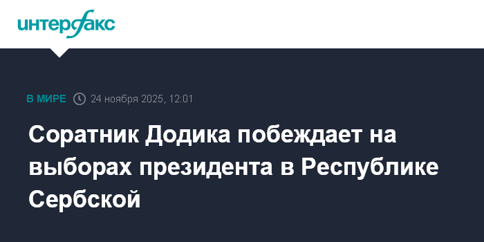Соратник Додика побеждает на выборах президента в Республике Сербской