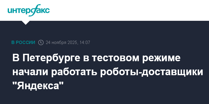 Москва. 24 ноября. INTERFAX.RU - В Приморском районе Петербурга в тестовом режиме начали работать роботы-доставщики, сообщает телеграм-канал городского Комитета по транспорту.