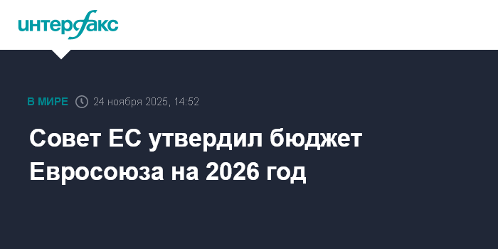 Совет ЕС утвердил бюджет Евросоюза на 2026 год