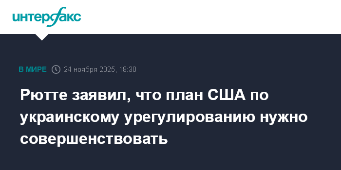Рютте заявил, что план США по украинскому урегулированию нужно совершенствовать