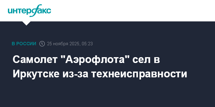 Самолет "Аэрофлота" сел в Иркутске из-за технеисправности