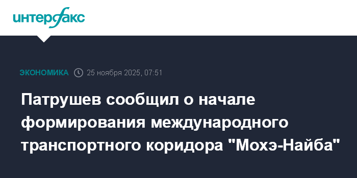 Патрушев сообщил о начале формирования международного транспортного коридора "Мохэ-Найба"