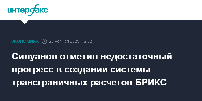 Силуанов отметил недостаточный прогресс в создании системы трансграничных расчетов БРИКС