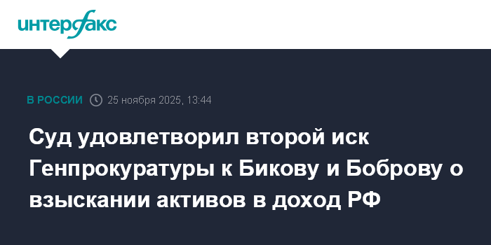 Суд удовлетворил второй иск Генпрокуратуры к Бикову и Боброву о взыскании активов в доход РФ