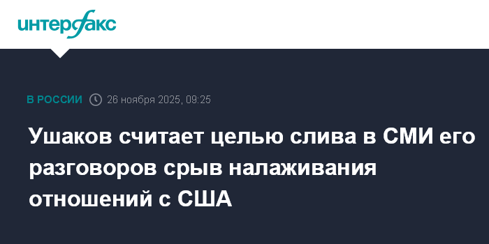 Ушаков считает целью слива в СМИ его разговоров срыв налаживания отношений с США