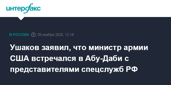 Ушаков заявил, что министр армии США встречался в Абу-Даби с представителями спецслужб РФ