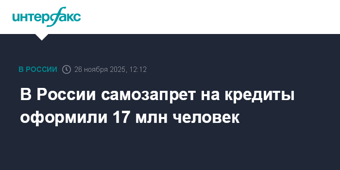 Москва. 26 ноября. INTERFAX.RU - Самозапрет на оформление кредитов и займов с 1 марта оформили 17 млн человек, сообщил в Совете Федерации вице-премьер Дмитрий Григоренко.