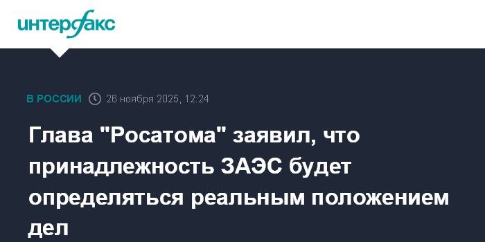 Москва. 26 ноября. INTERFAX.RU - Глава "Росатома" Алексей Лихачев, комментируя возможность возвращения Украине контроля над Запорожской АЭС, отметил, что решение будет приниматься исходя из реального положения дел. Он сказал это Александру Юнашеву.