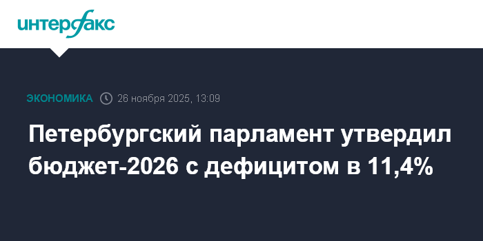 Петербургский парламент утвердил бюджет-2026 с дефицитом в 11,4%