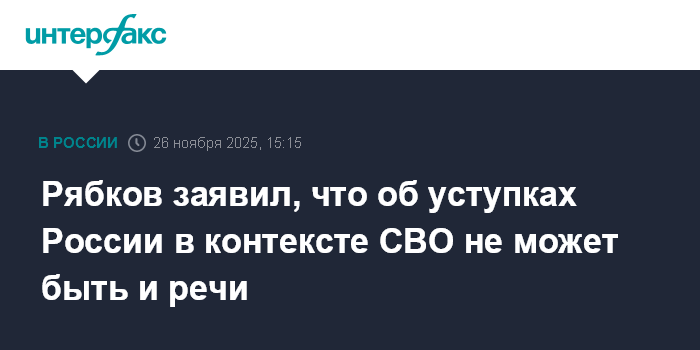Рябков заявил, что об уступках России в контексте СВО не может быть и речи