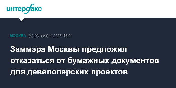 Заммэра Москвы предложил отказаться от бумажных документов для девелоперских проектов