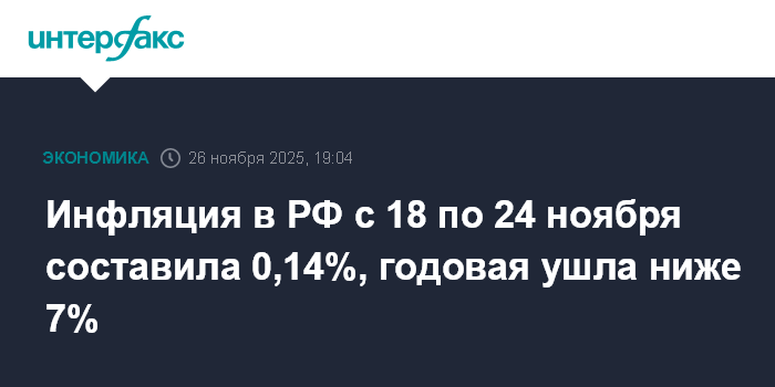 Инфляция в РФ с 18 по 24 ноября составила 0,14%, годовая ушла ниже 7%
