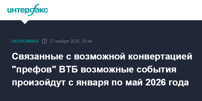Связанные с возможной конвертацией "префов" ВТБ возможные события произойдут с января по май 2026 года