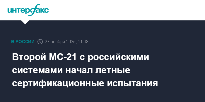 Второй МС-21 с российскими системами начал летные сертификационные испытания