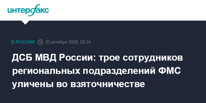 ДСБ МВД России: трое сотрудников региональных подразделений ФМС уличены во взяточничестве