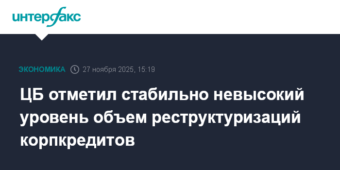 ЦБ отметил стабильно невысокий уровень объем реструктуризаций корпкредитов