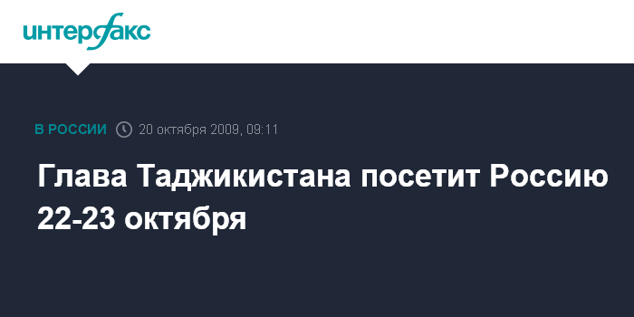 "22-23 октября 2009 г. по приглашению президента Российской Федерации Дмитрия Медведева Россию с государственным визитом посетит президент Республики Таджикистан Эмомали Рахмон", - говорится в сообщении.