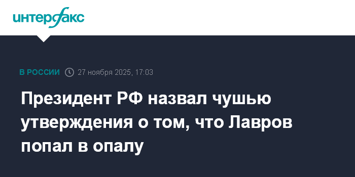 Москва. 27 ноября. INTERFAX.RU - Президент РФ Владимир Путин назвал чушью разговоры о том, что министр иностранных дел России Сергей Лавров попал в опалу, по данным главы государства, он готовится ко встрече с американскими партнерами.