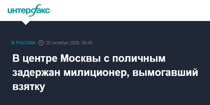В центре Москвы с поличным задержан милиционер, вымогавший взятку