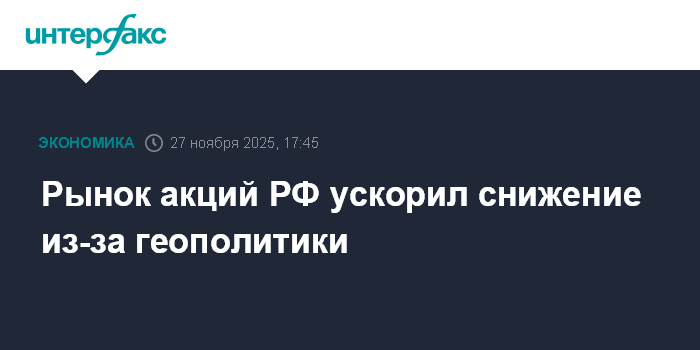 Москва. 27 ноября. INTERFAX.RU - Российский рынок акций вечером в четверг ускорил снижение после заявления президента РФ Владимира Путина о нелегитимности нынешней украинской власти, что дало понять, что скорого завершения процесса мирного урегулирования украинского конфликта ожидать не стоит. Индекс МосБиржи откатился в район 2610 пунктов.