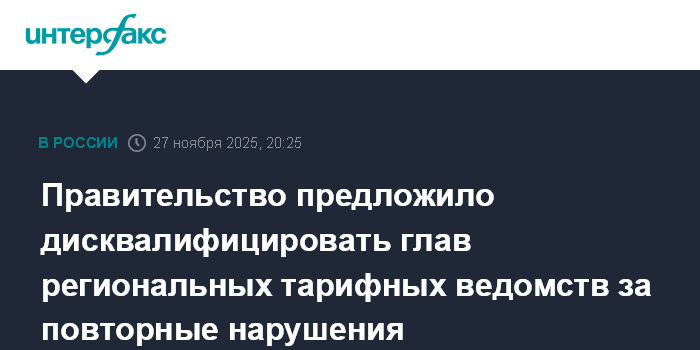 Правительство предложило дисквалифицировать глав региональных тарифных ведомств за повторные нарушения