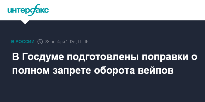 Поправки предусматривают полный запрет продажи, распространения и оборота электронных средств доставки никотина, включая жидкости и устройства к ним, а также ужесточение ответственности за незаконный оборот и вовлечение несовершеннолетних в потребление никотинсодержащей продукции.