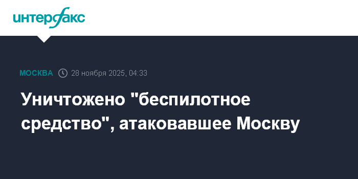 Москва. 28 ноября. INTERFAX.RU - Мэр Москвы Сергей Собянин сообщил об уничтожении "беспилотного средства", атаковавшего Москву.
