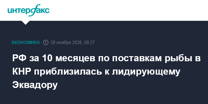 РФ за 10 месяцев по поставкам рыбы в КНР приблизилась к лидирующему Эквадору