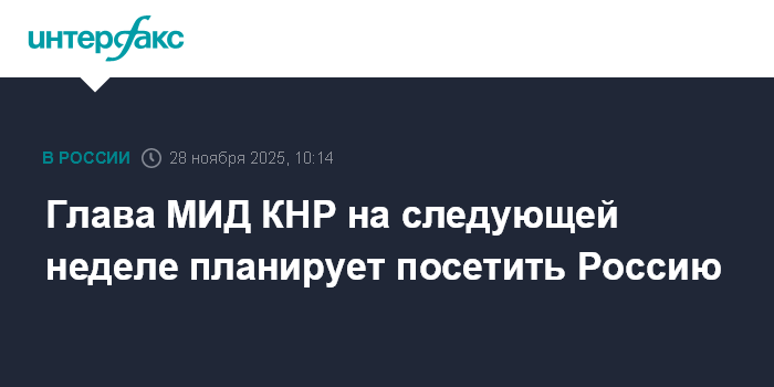 Москва. 28 ноября. INTERFAX.RU - Глава МИД Китая Ван И намерен в начале следующей недели посетить Россию, сообщает в пятницу Bloomberg со ссылкой на китайские власти.