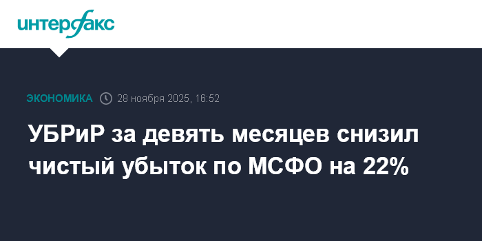 Москва. 28 ноября. INTERFAX.RU - Уральский банк реконструкции и развития (УБРиР) в январе-сентябре 2025 года снизил чистый убыток по МСФО на 22,2% по сравнению с показателем аналогичного периода 2024 года - до 7,82 млрд рублей, говорится в отчете банка.