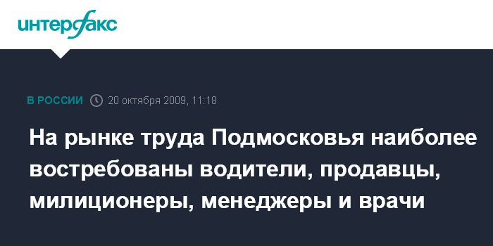 На рынке труда Подмосковья наиболее востребованы водители, продавцы, милиционеры, менеджеры и врачи