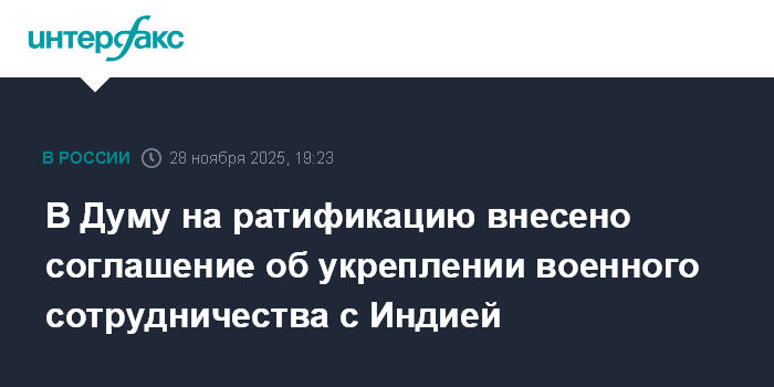 В Думу на ратификацию внесено соглашение об укреплении военного сотрудничества с Индией