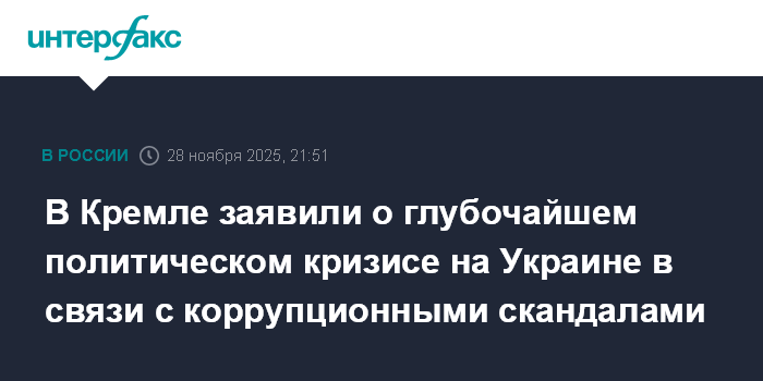 В Кремле заявили о глубочайшем политическом кризисе на Украине в связи с коррупционными скандалами
