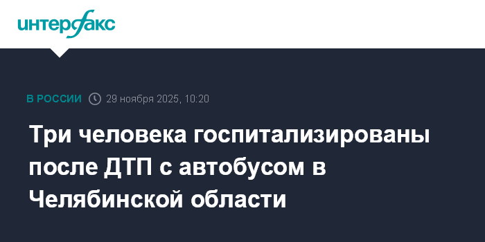 Москва. 29 ноября. INTERFAX.RU - Трое пассажиров, в том числе двое детей, доставлены в больницу после ДТП в Челябинской области с автобусом, перевозившим детскую футбольную команду, сообщает следственное управление СКР по региону.