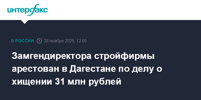 Замгендиректора стройфирмы арестован в Дагестане по делу о хищении 31 млн рублей