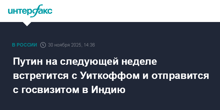 Путин на следующей неделе встретится с Уиткоффом и отправится с госвизитом в Индию