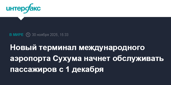 Москва. 30 ноября. INTERFAX.RU - Президент Абхазии Бадра Гунба и первый заместитель руководителя администрации президента Российской Федерации Сергей Кириенко осмотрели новый терминал международного аэропорта Сухума имени В. Г. Ардзинба. Терминал начнет обслуживать пассажиров с 1 декабря, сообщает пресс-служба президента республики.
