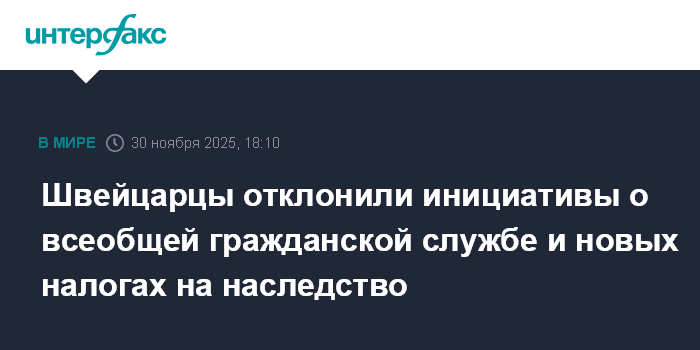 Швейцарцы отклонили инициативы о всеобщей гражданской службе и новых налогах на наследство